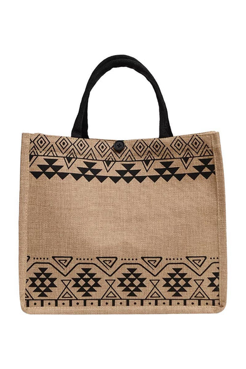 Assorted Boho Tribal Print Burlap Box Tote Beach Bag