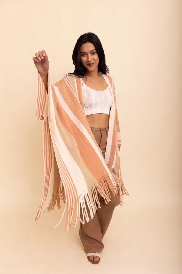 Wrap yourself in beauty and comfort with the Rayas Ruana. Spice up any outfit or simply snuggle on the couch with it. Works great for work, the beach, on a chilly airplane, around the campfire, heading to class, or lunch with friends. You will cherish this little number for many many moons. Grab one for you and your bestie! 100% acrylic, Imported. One size fits most.